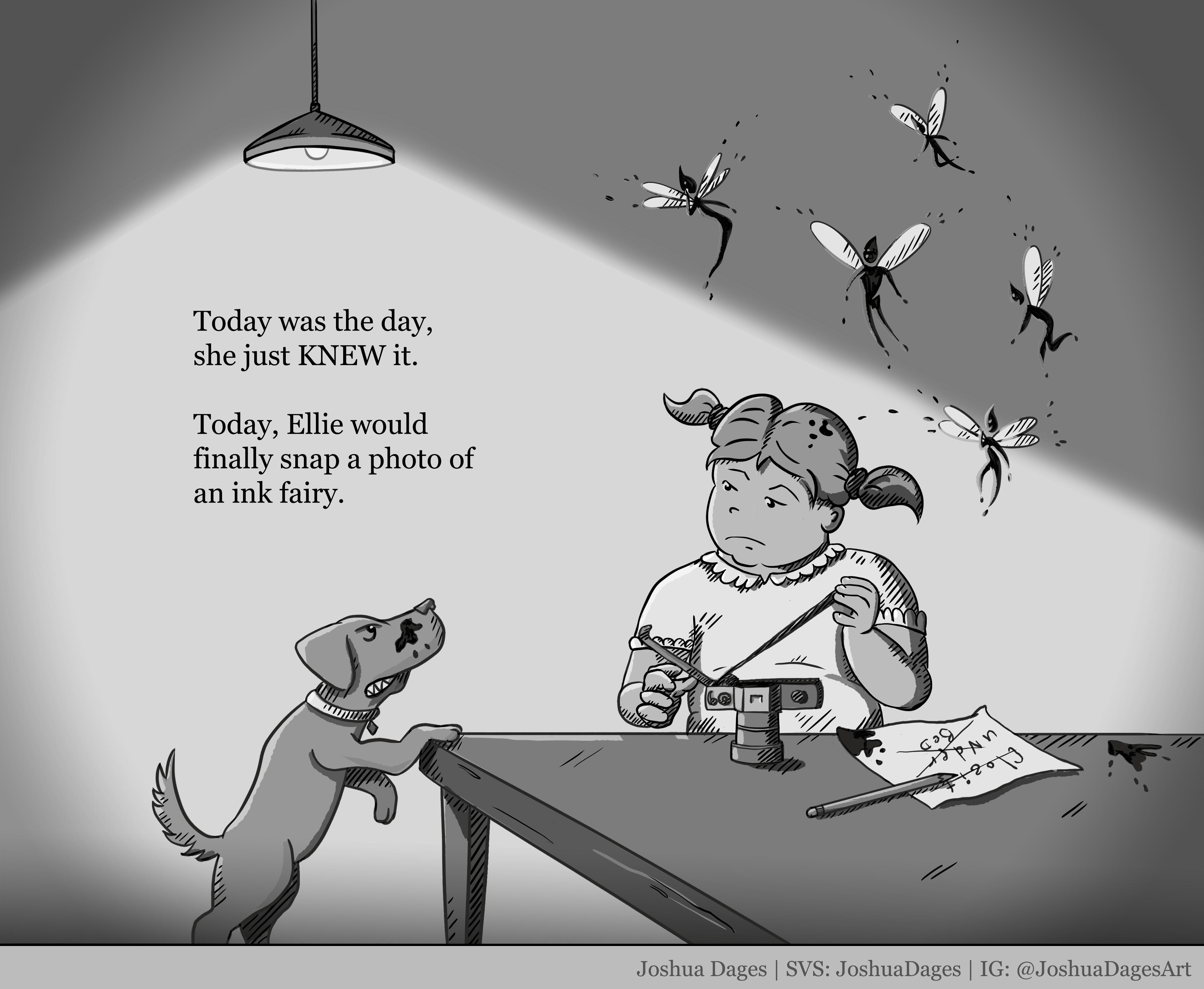 "Today was the day, she just KNEW it. Today, Ellie would finally snap a photo of an ink fairy."