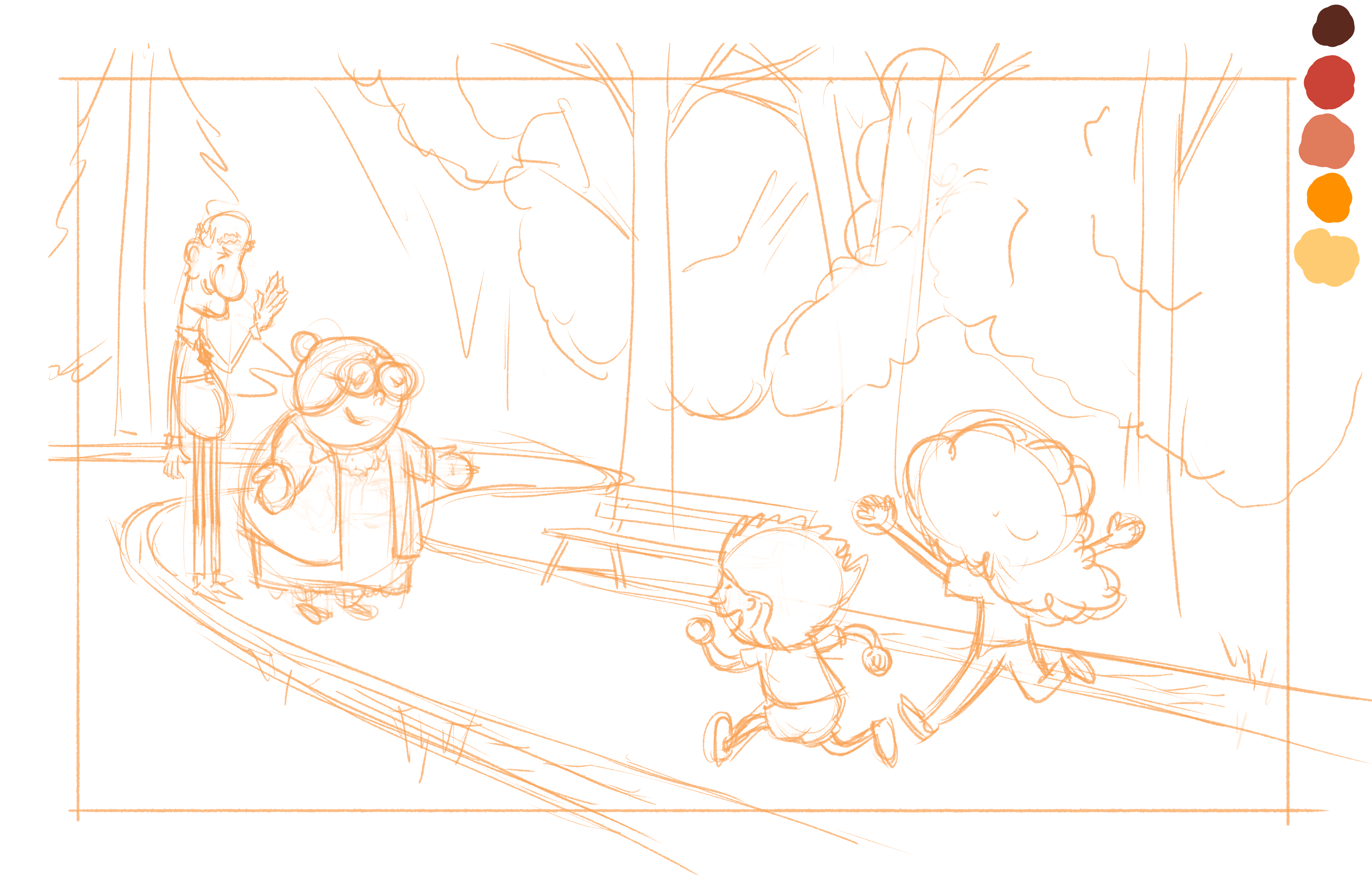 Looks great to me. I might think about opening up the grandma's pose to make a stronger silhouette with her right arm, maybe add a bit of overlap between the characters too.