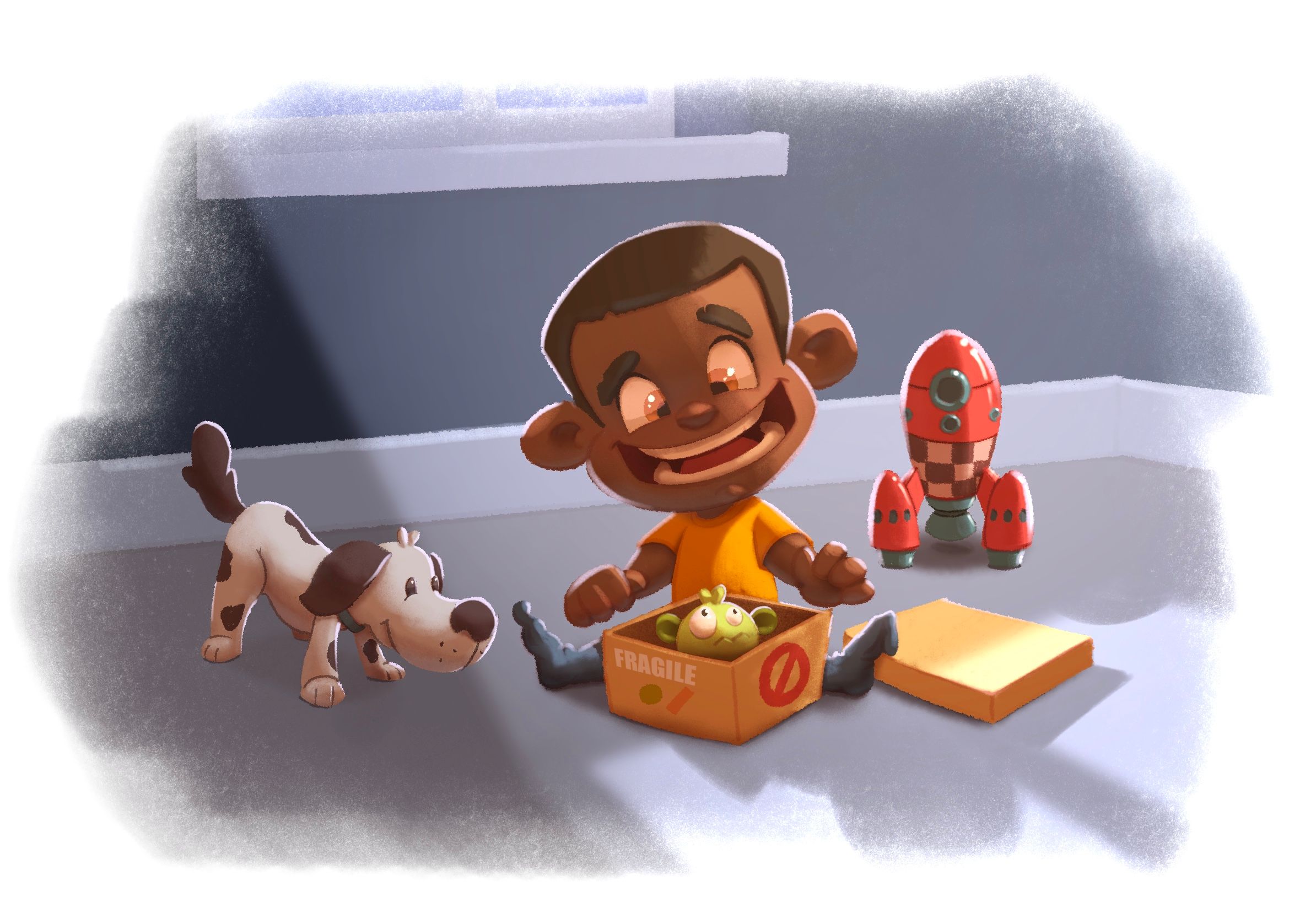 @kayleenartlover do you mean for the kid who is opening a box? Or for Hansel?