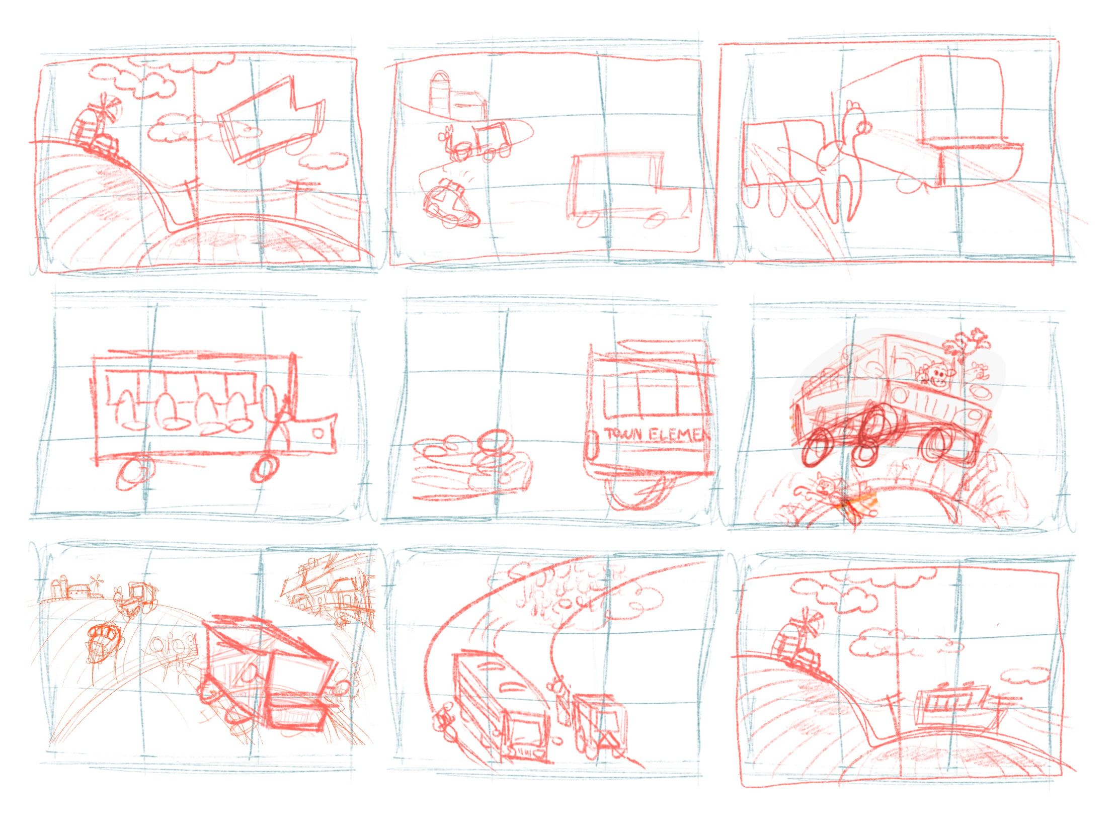 @tom-barrett yeah so the original sketch made things a bit closer to eachother but it didn't fit the perspective for the landscape. I want to have elements other than the elementary school bus driven by farm animals to tell the story of what's happening. So I'm trying to figure out other options.