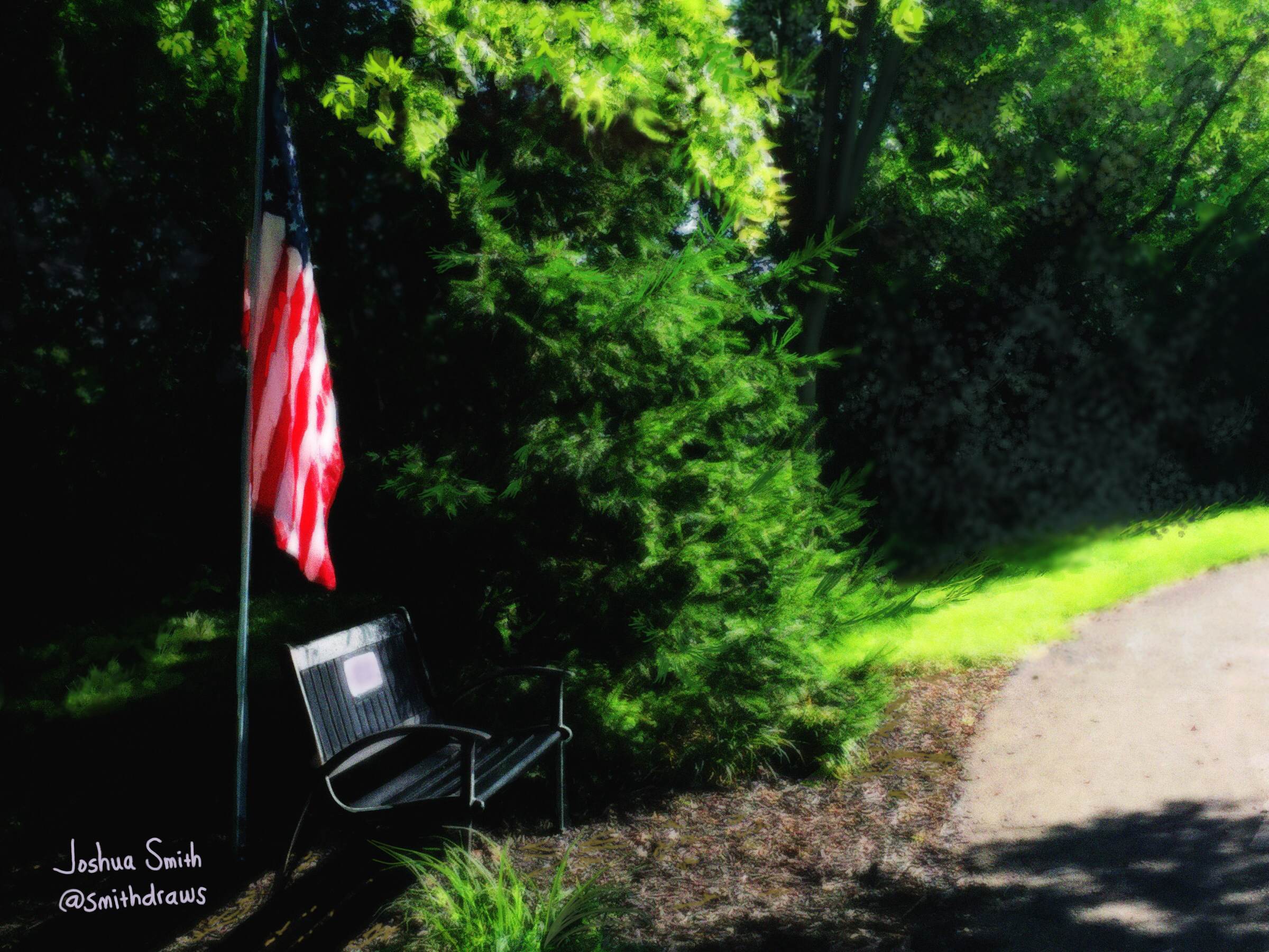 This is my, "Independence," submission. The flag of course is a symbol for sovereignty and independence. This happens to depict a scene from my local park where the flag guards a bench that is dedicated to the memory of a local military service member. Painted using the Procreate app.0_1500318999011_IMG_0901.JPG