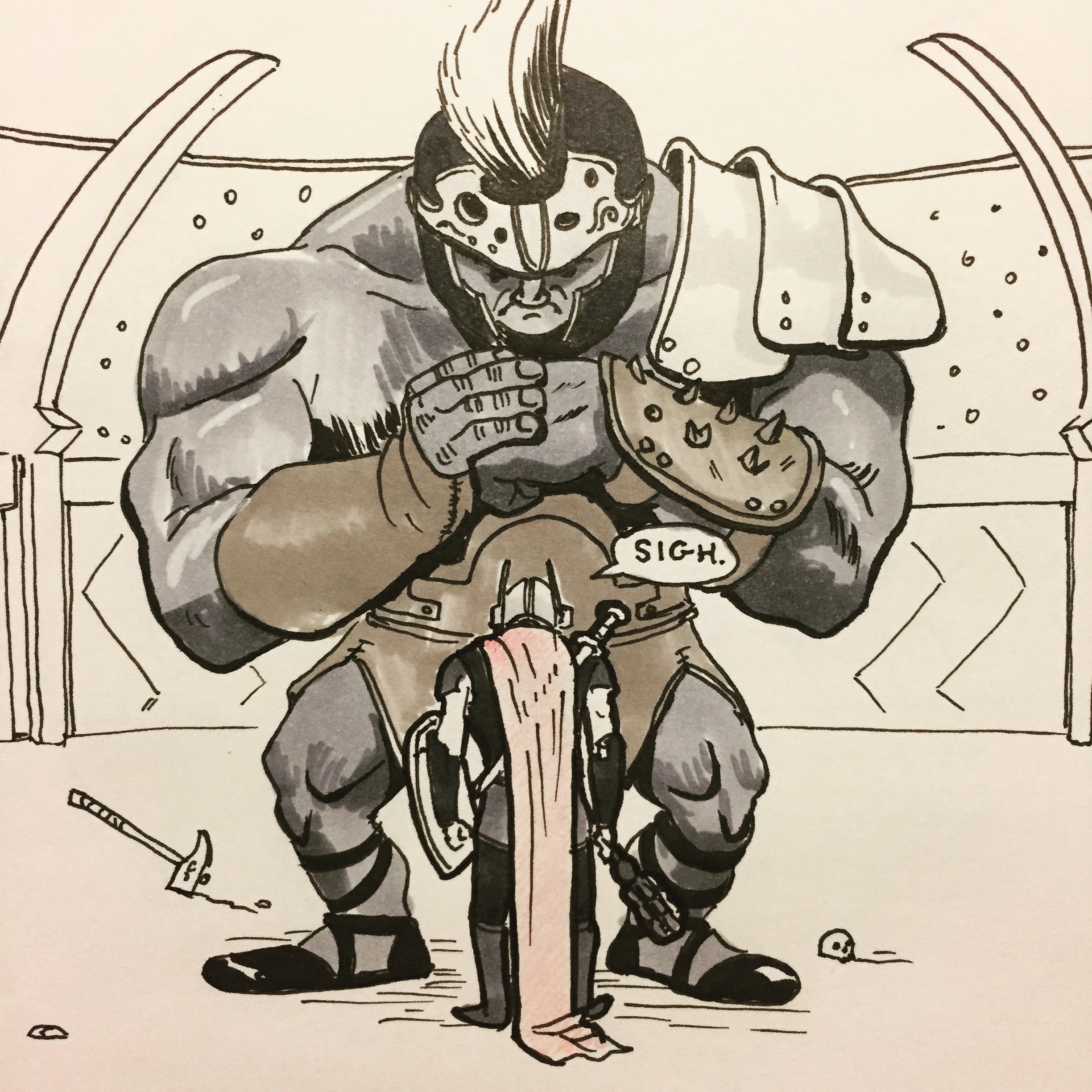 Day 19! Still two behind but I know I’ll catch up tomorrow! This is a tiny little 3 inch brush drawing of lagatha from