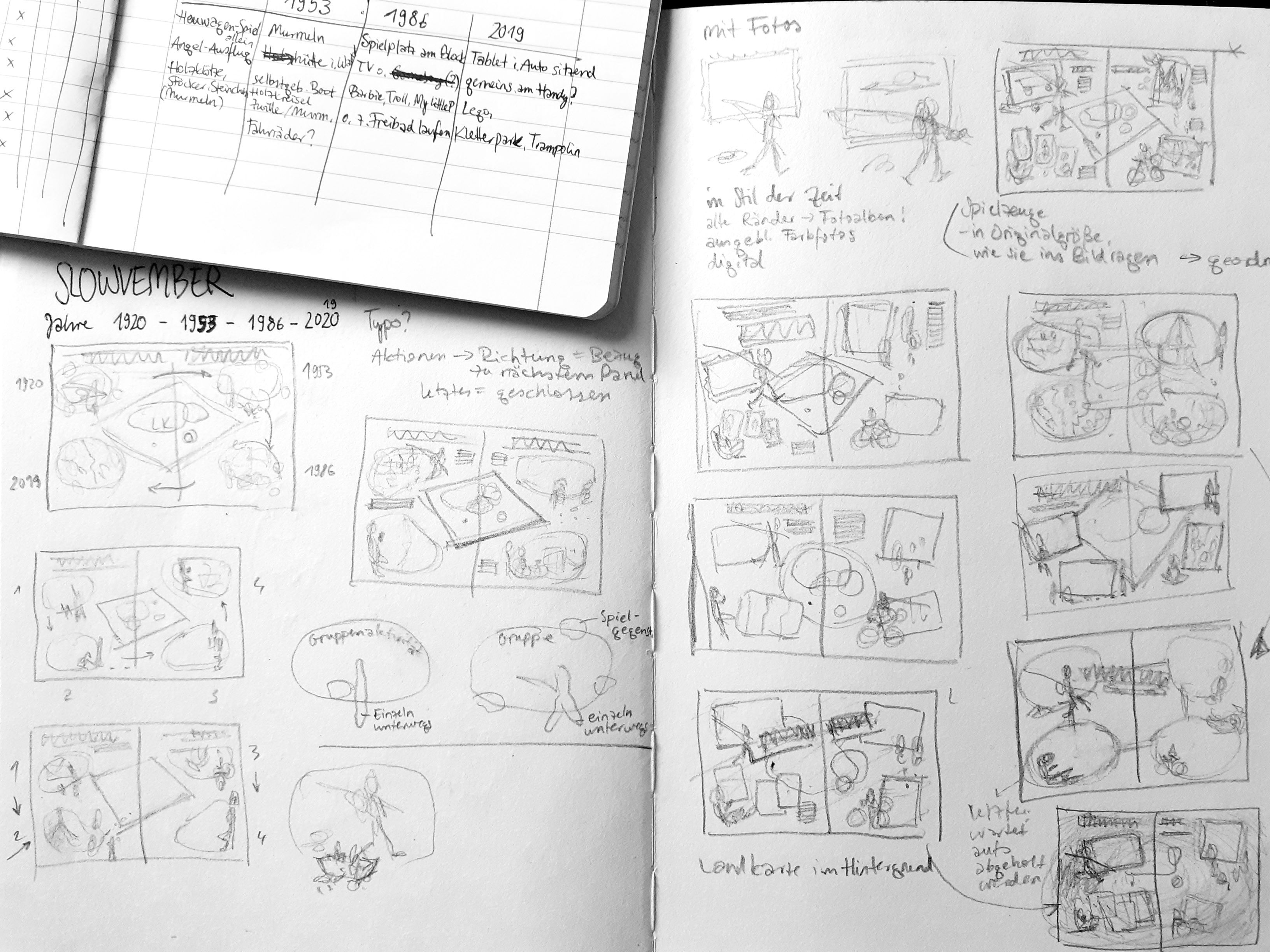 I decided to start a century ago and do jumps of a third of a century to end up in today within four periods. this is 1919, 1953, 1986 and 2019. I found out about typical games children played/are playing in that period and about places they used to go.