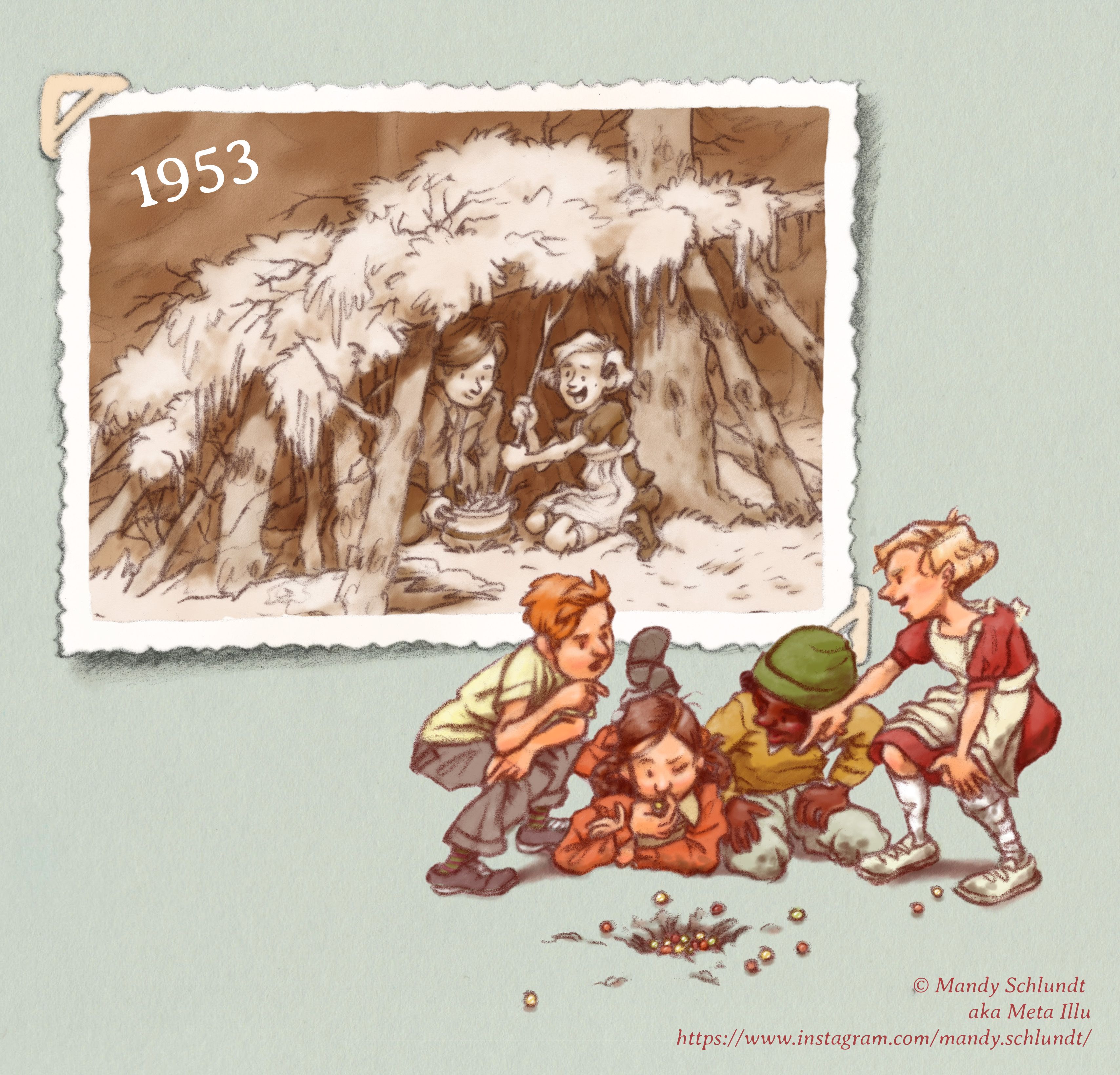 @Meta I remember reading the very article you were mentioning that got you started. I found it fascinating too and it's something that we often comment on from my Dad's experience to my kids' or even from my husband's since he's from Bolivia, vs mine. I'm loving the poses and feel of your sketches, especially the kids building forts and playing marbles. Great ideas! I'm looking forward to watching you develop them!