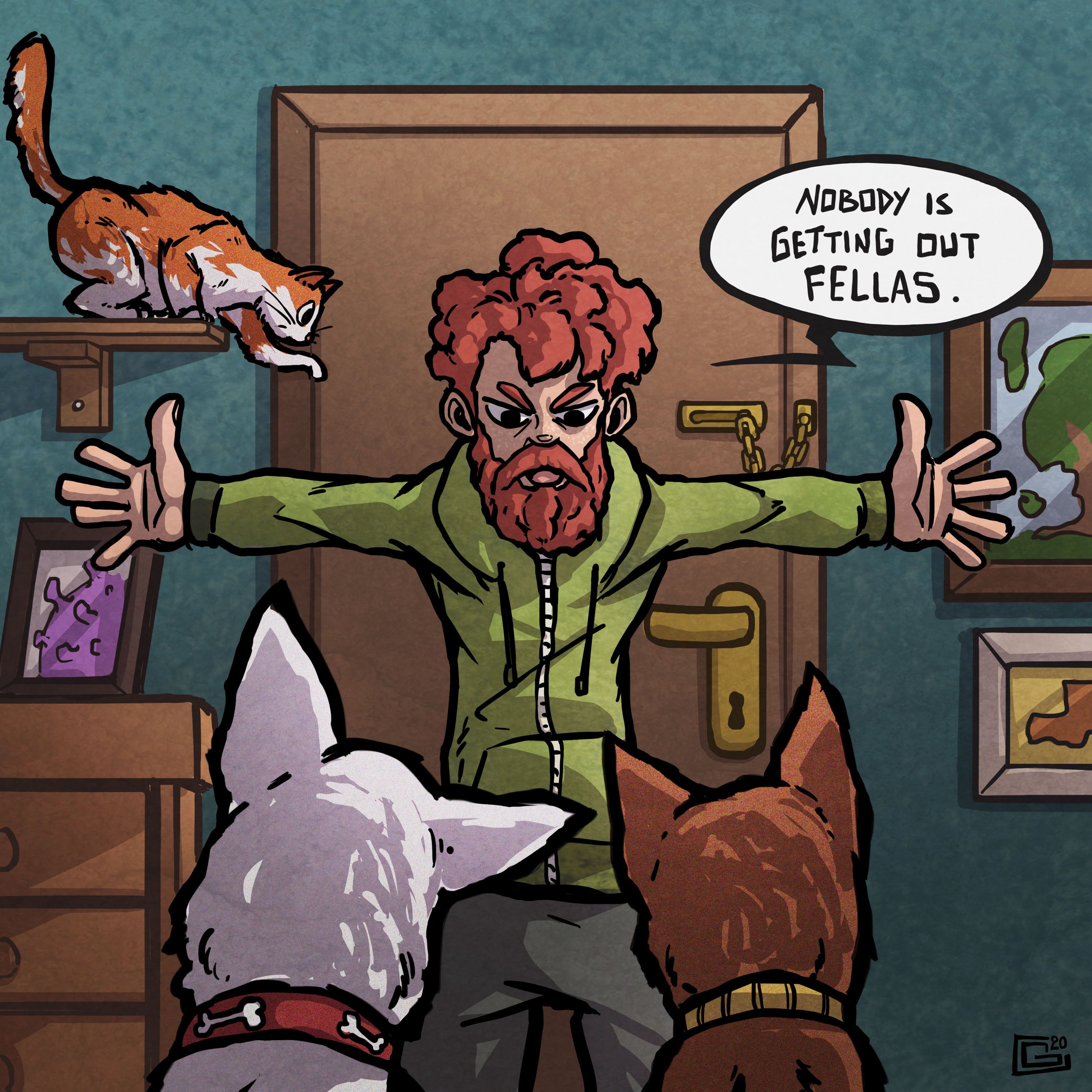 I absolutely enjoy this break from reality from the time being.This artwork was made having in mind how some kind of characters overreact to some things, without critical thinking ,or just thinking..